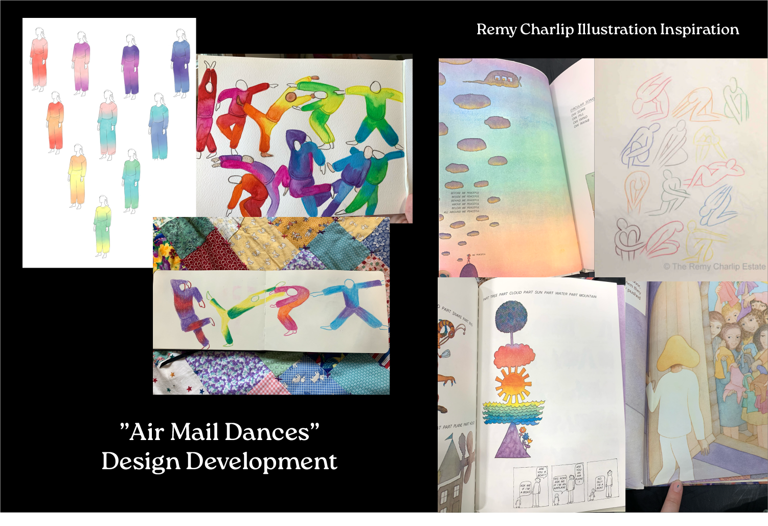 Inspired by Charlip’s career as a choreographer and children's book illustrator, Chloe’s costume design drew from his distinct color palette, simplified body forms and rainbow motifs. Chloe also worked as dyer for the piece, honing her gradient dye technique.